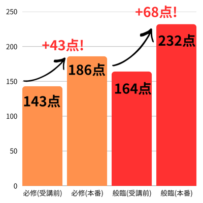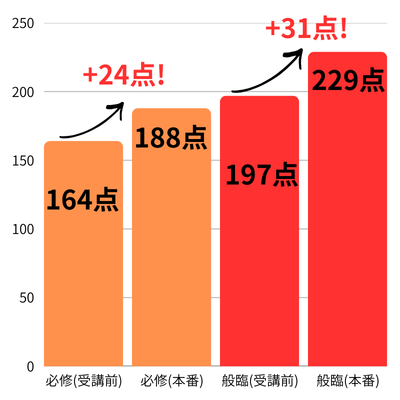 理解を大切にする勉強を4月から続けたところ、10月の模試では一般臨床で232点が取れ、不合格時と比べて50点近く伸びました。MEDICINEの先生方に習えて良かったとともに、もっと早く指導していただいていればと感じました。ありがとうございました!